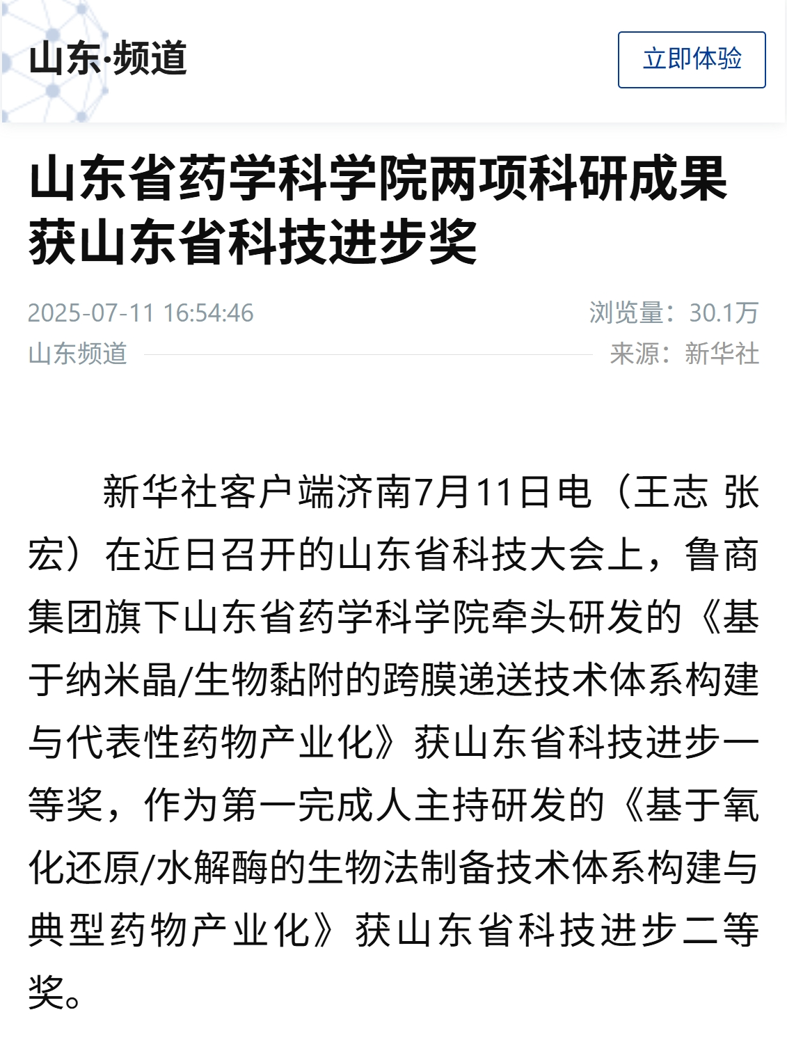 破解药物递送三重密码山东省药学科学院荣获山东省科技进步一等奖...