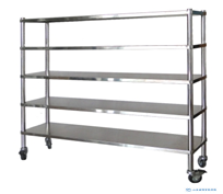 带4个4寸的聚氨脂耐磨不锈钢万向轮,其中两个带刹车装置。